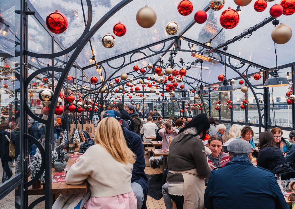 In gläsernen Boutiquen finden Besucher exklusive Händler und handgefertigte Unikate. Zwei beheizte Pop-up-Restaurants laden zum stilvollen Verweilen ein – mit Blick auf Wasser, Lichterglanz und weihnachtliche Stimmung.