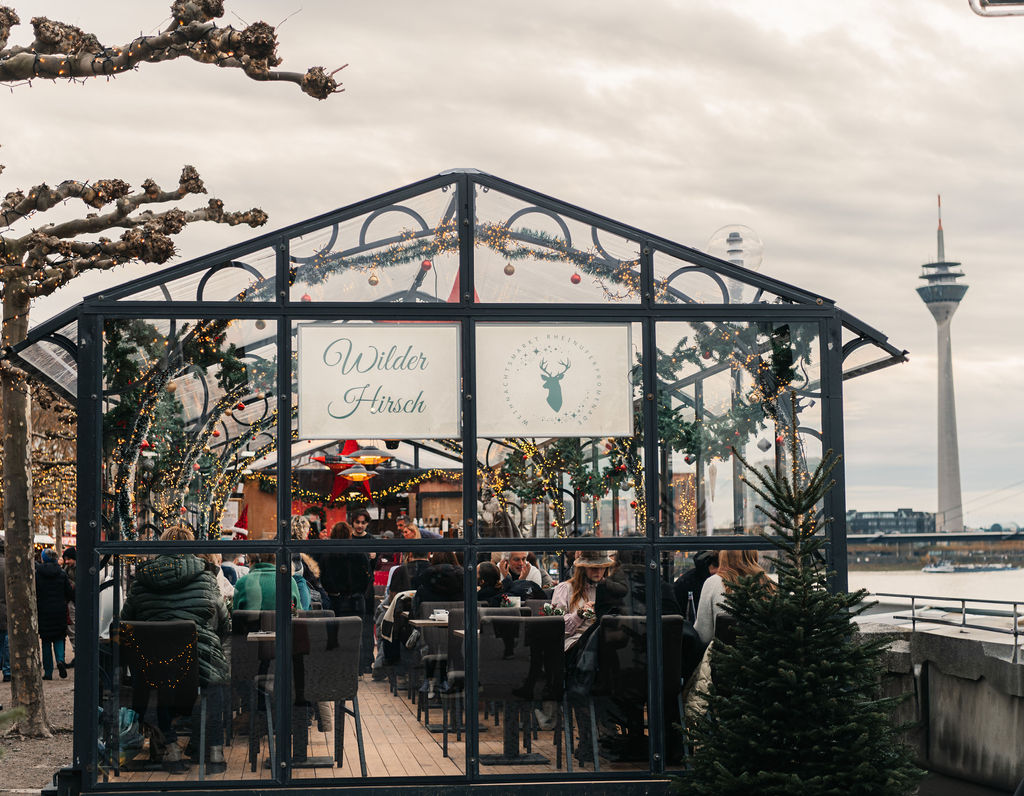 Ein Publikumsliebling kehrt zurück: Die überdachten, gläsernen Pop-up-Restaurants „Wilder Hirsch“ und „Berg Stübli“. Auf jeweils 64 Quadratmetern servieren sie österreichische und bayerische Spezialitäten – mit Blick auf den Rhein und die Düsseldorfer Skyline.