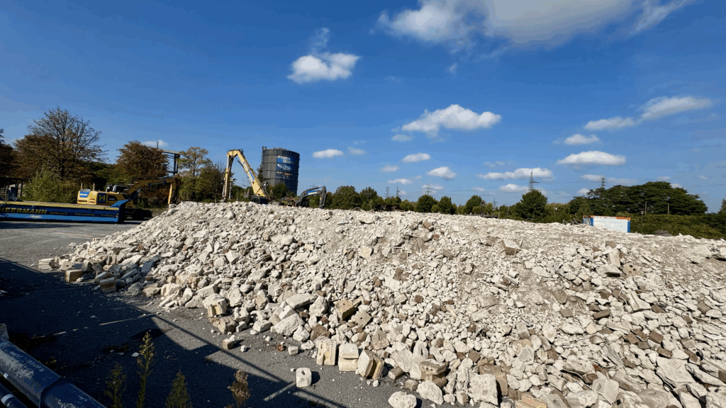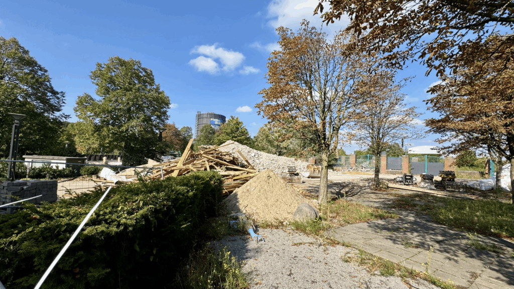 Am gleichen Tag wie das Job-Casting beginnt auch der Abriss des alten Brauhauses „Zeche Jacobi“. Danach startet der richtige Bau.