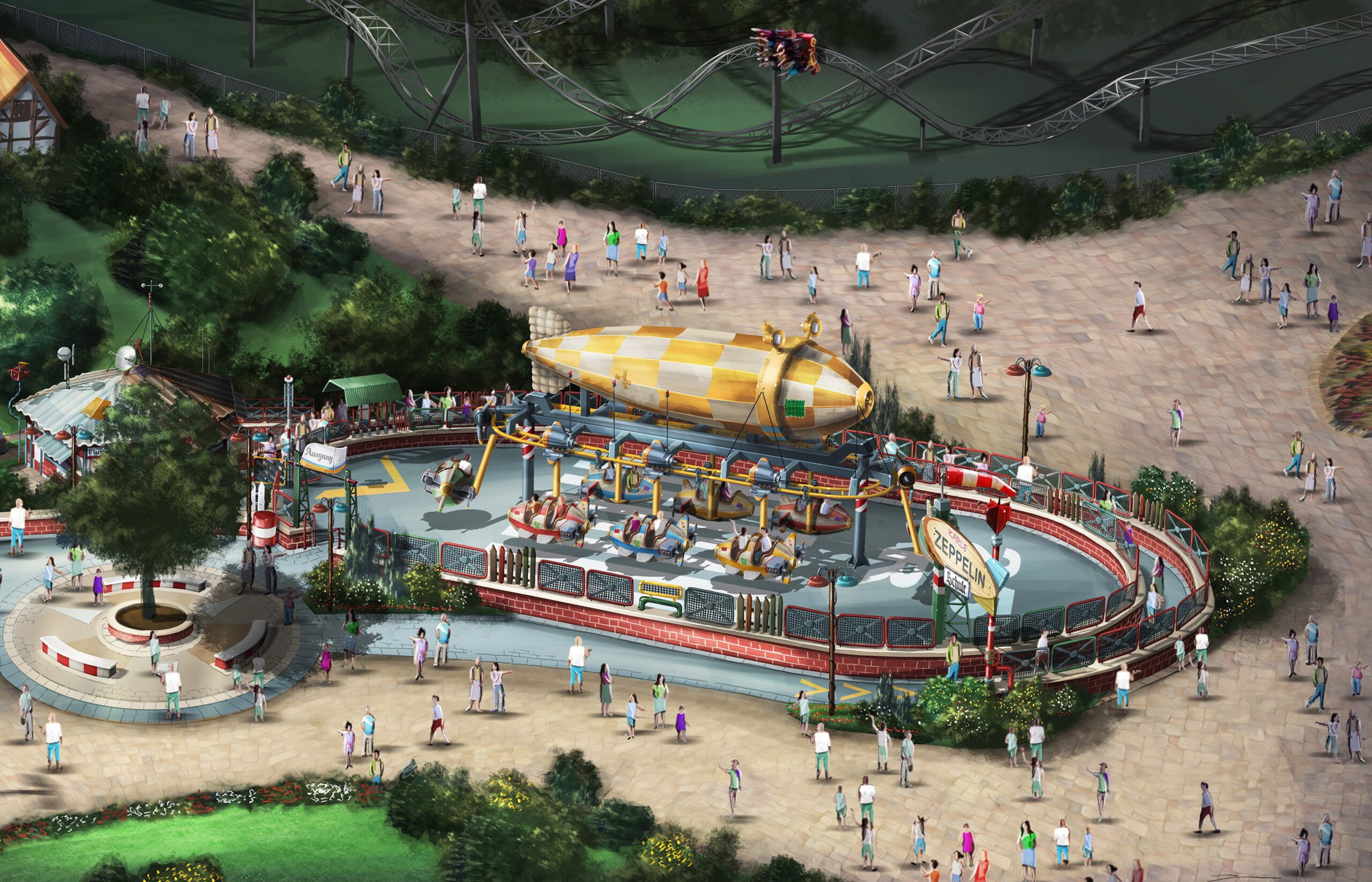 2026 startet im Erlebnispark Tripsdrill die neue Familienattraktion „LUFTIKUS“ – ein historisch gestalteter Zeppelin, der ab 28. März täglich in den Rundflug geht.