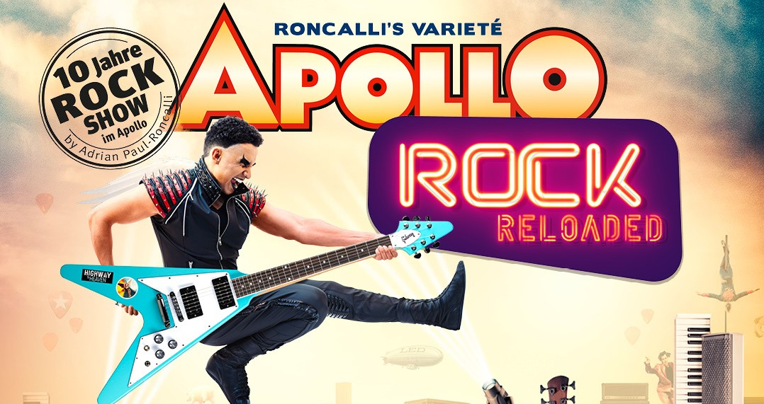 „Rock Reloaded“ feiert 10 Jahre Rockshow im Apollo Varieté. Vom 16. Januar bis 19. April 2026 verbinden internationale Artisten und Live-Rockmusik Varieté mit Energie und Jubiläumsstimmung.
